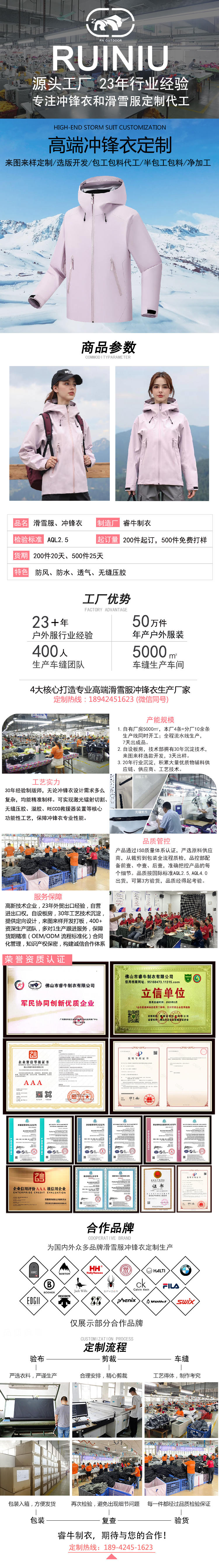 沖鋒衣加工廠包工包料定制生產(chǎn)單層硬殼沖鋒衣